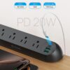 This desk power strip features 2 PD 20W USB C and 2 QC 18W USB A, using a single USB C provides PD 20W Max, using a single USB A provides QC 18W Max, and using any two or more USB ports provides 15W Max. Enjoy fast, efficient charging for your phone and other USB devices